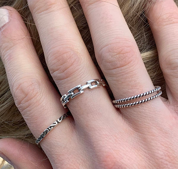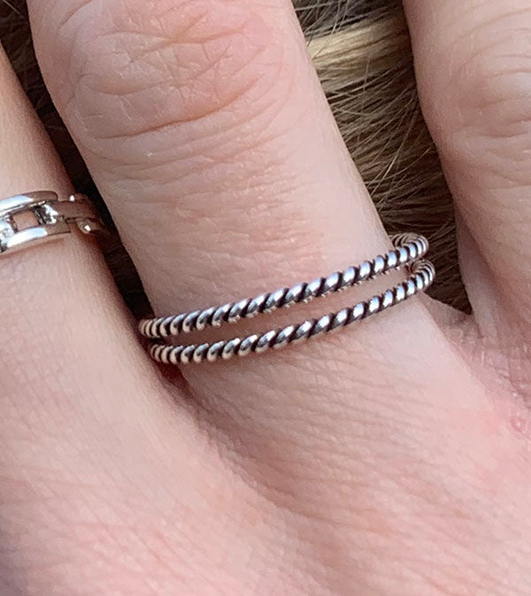Nice ring that looks like two. This one in brushed and oxidized silver.