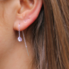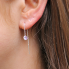 Beautiful earring with a chain where the chain ends in a nice zirconia stone. The earring is a so-called "pull through" earring. Can be combined however you want and you can adjust the length of where you want the drop to end.