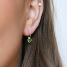 Super cute little hoop with a hanging olive green cubic zirconia heart. The heart can be removed so you can use just the hoop. The hoop is a thin hoop, about 12-14mm in diameter. The heart measures about 5mm in diameter.
