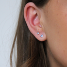 A pair of incredibly beautiful earrings with two faceted Cubic Zirconia stones. Available in several different sizes. You choose the size in the menu. Nice to have several sizes in the same ear!