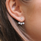 A pair of incredible silver earrings with four cubic zirconia stones. One stone sits on the earlobe and the other three end up under the ear. This type of earrings has become super popular and trendy lately. So beautiful and unique!
