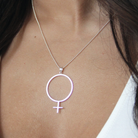 A large necklace in the shape of the female sign. A real power piece! 30 x 45mm large. Feel free to complement with our large Venus earrings for even more power!