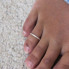 A stylish toe ring in the shape of a thin braided silver wire. One size, the rings are open so they can be "tightened" around the toe.