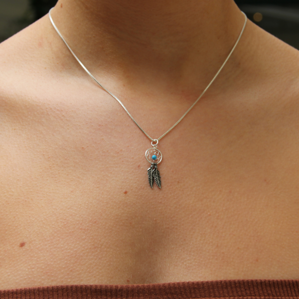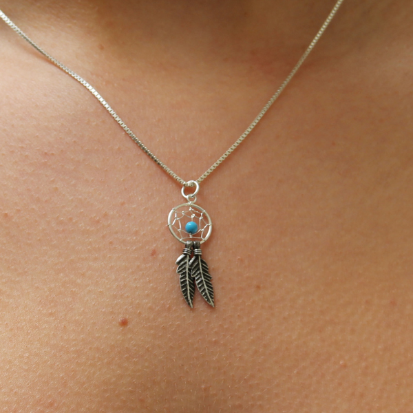 NECKLACE/PENDANT IN SILVER DREAMCATCHER TURQUOISE STONE