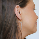 A pair of trendy silver hoops with a long silver pin dangling nicely. The hoops are approximately 19mm in diameter and the silver pin is 30mm. Fastens with a pin and butterfly at the back.