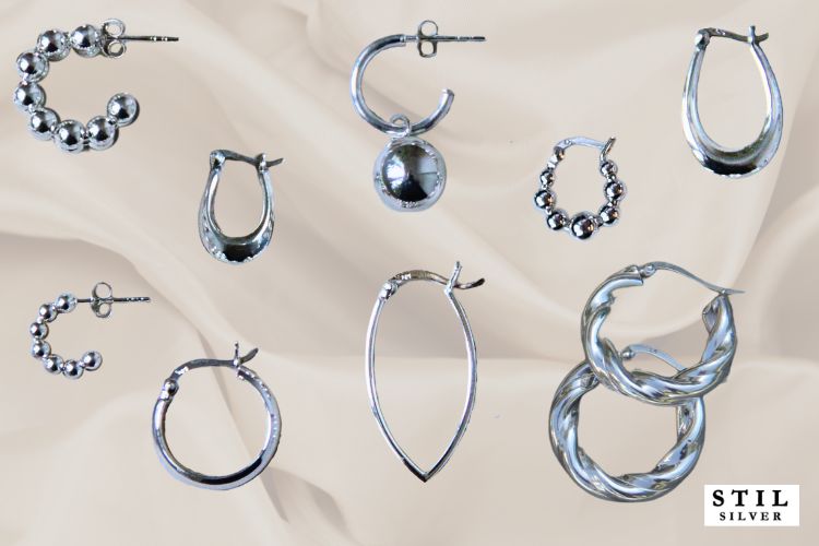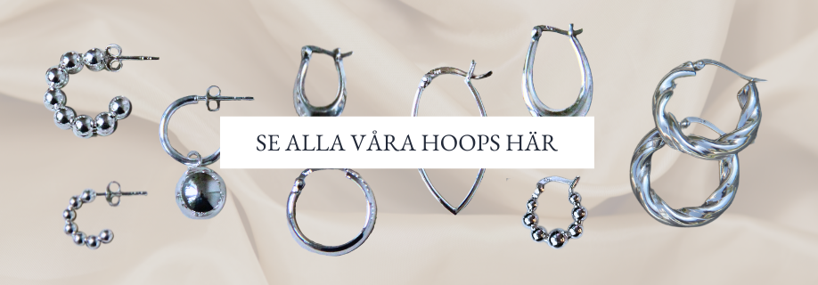 HOOPS MED OLIKA FORMER- Det här är en rolig kategori! Som med allt annat går det att variera designen på de klassiska hoopsen i både form, tjocklek och diameter i oändlighet! Det finns så många snygga och intressanta modeller av de klassiska silverhoopsen! Tjocka hoops som består enbart av silverkulor, hoops som ser ut som kedjor och hoops med olika texturer är bara några. Har du fler hål i öronen är detta en rolig kategori att mixa från.