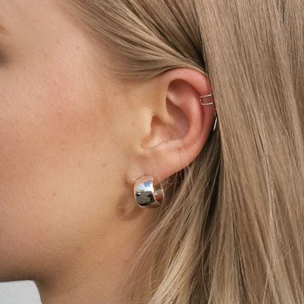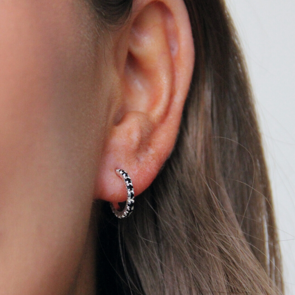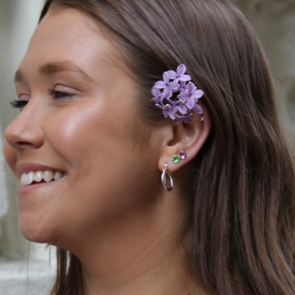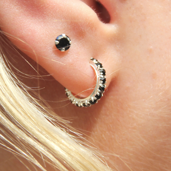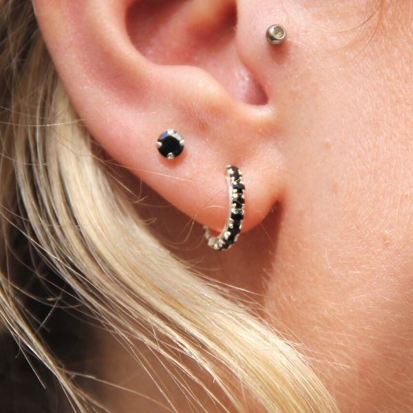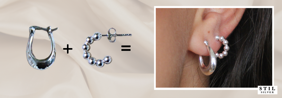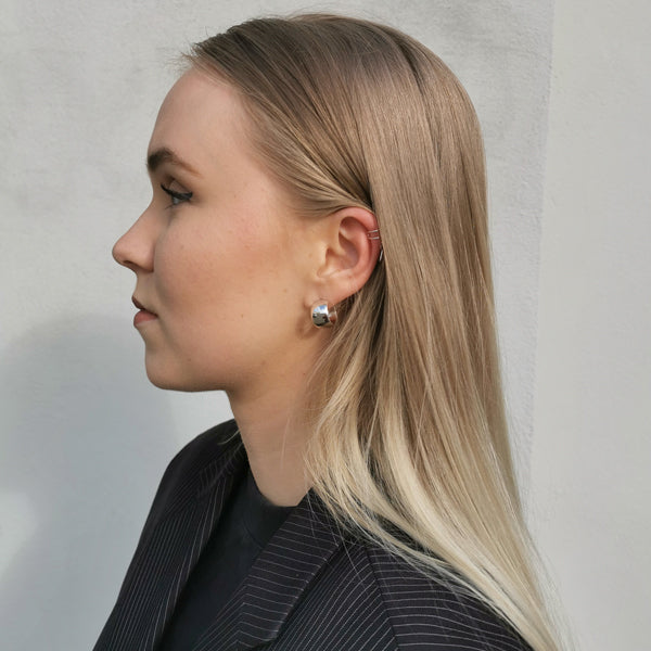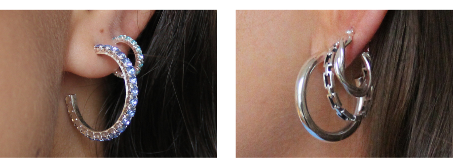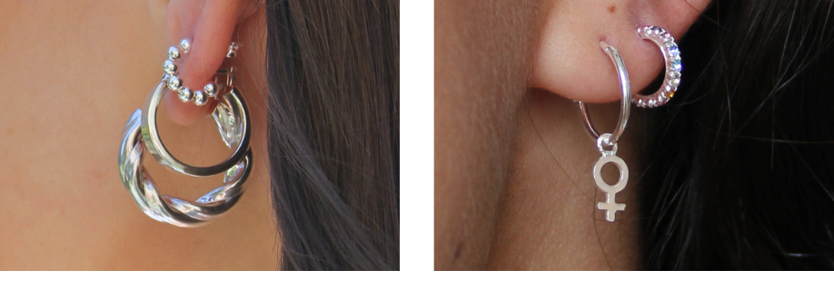 Hur ska man då tänka när man sätter ihop en look med flera hoops? En bra tumregel är att tänka: Hoops med störst diameter längst ner. Alltså, det största paret sätter du längst på ner öronsnibben och jobbar dig sedan uppåt på örat med mindre diameter. En annan bra tumregel är, om du ska styla ett par hoops med hänge, att även placera dessa lägst ner på öronsnibben. På så sätt får du en snygg och balanserad siluett.