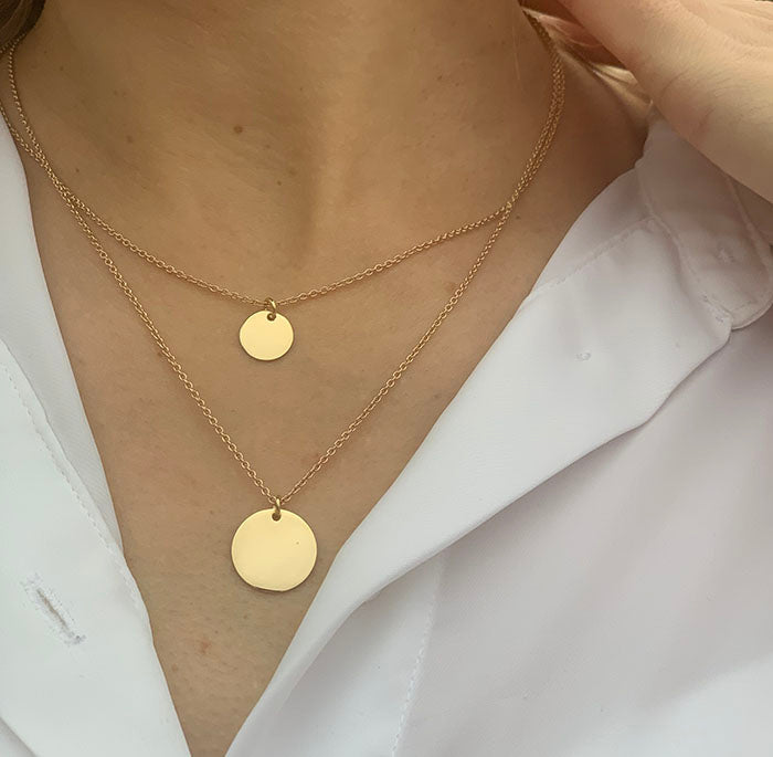 Vackert gyllene halsband med två enheter/kedjor med "dots". Ett halsband som ser ut som två. Tillverkat av 925 sterling silver som guldpläterats med 18 k guld. Kedjan är 40 centimeter lång med en förlängningskedja så att den kan bli upp till 45 centimeter lång.