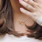 Snyggt och stilrent halsband med två cirklar som symboliserar vänskap eller kärlek. Äkta silver med 18k guldplätering. Cirklarna sitter fast i kedjan. Längden på halsbandet är 40 cm med en liten förlängning så det kan bli 42,5 cm.