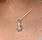 En snögubbe som inte kyler ner din hals utan bara får beundrande blickar. Så himla söt! Kedjan på bilden är en veneziakedja, den kan du köpa under kategorin "kedjor". Obs, Kedja medföljer ej utan du väljer själv kedja i menyn.