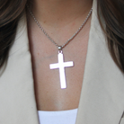Ett stort silverkors som mäter 50x33 och 7mm brett. Kedja ingår ej i priset utan det väljer du själv i menyn för kedjor. Detta smycke har en stor ögla varpå lite kraftigare kedjor passar fint.