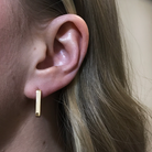 Rektangulär guldpläterad creol som knäpps baktill. Creolen är 1,5cm x 1cm och 3mm i tjocklek. En snygg creol som passar till vardags som på fest!