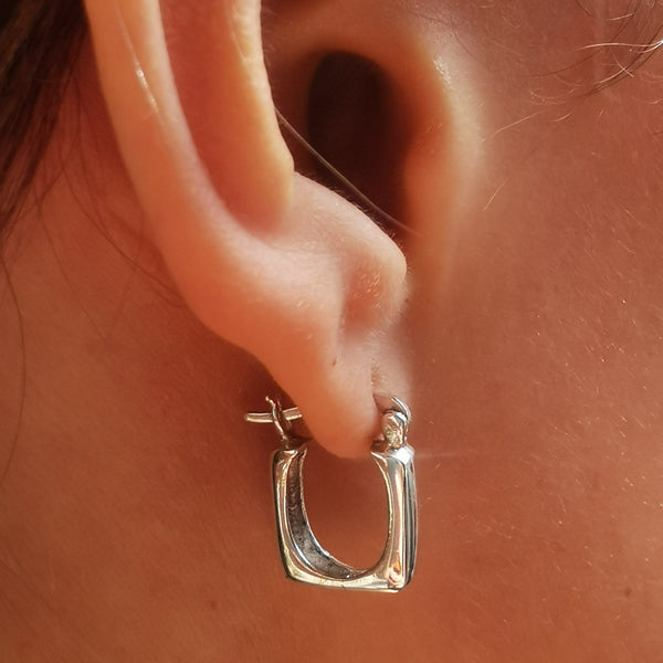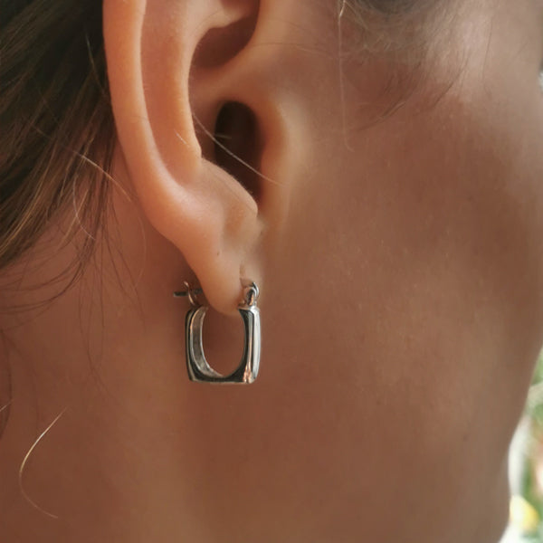 Fyrkantig creol silverörhänge med som knäpps baktill. Creolen är 1,7cm x 1,7cm och 3mm i tjocklek. Riktig snygg och stilren creol som sticker ut.
