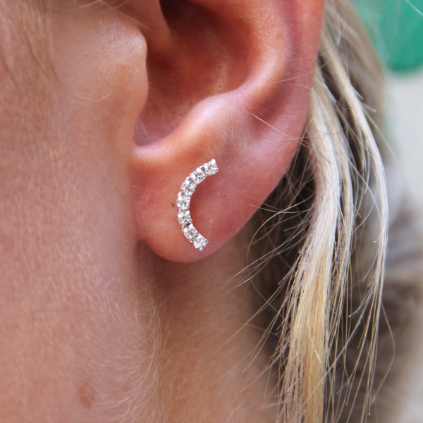Ett par underbara bågar med vita cubic zirkoner. Bär örhänget hur du vill, åt vilket håll du tycker är snyggast! Örhänget är 2mm bred och 13mm långt från sida till sida.