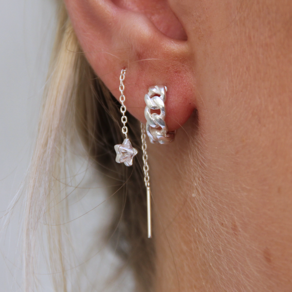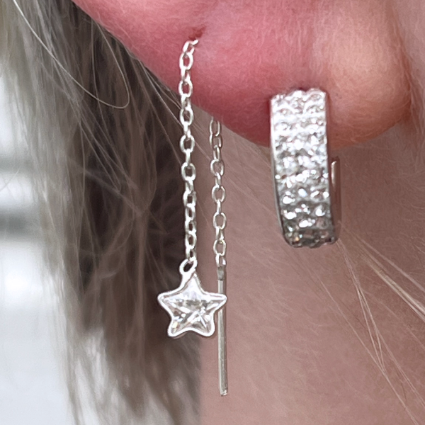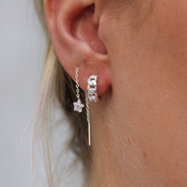 Snygg vit zirkoniastjärna som hänger på en kedja! Trä det igenom hålet och smycka dina öron med en av våra populära öronkedjor.