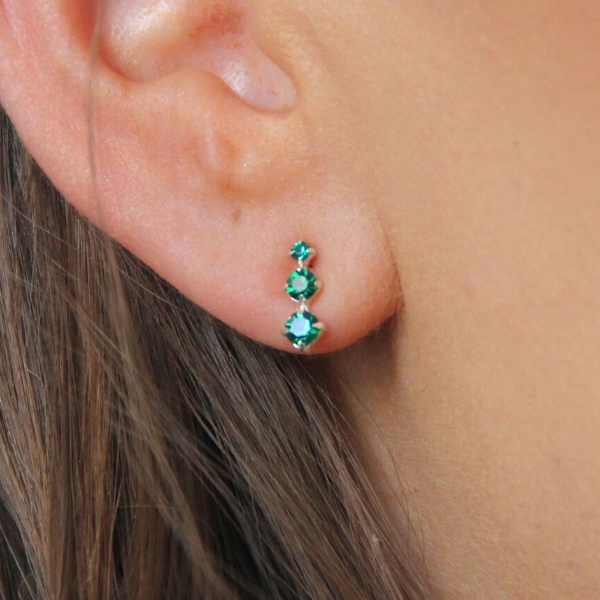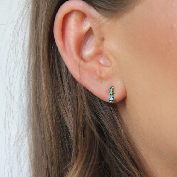 Ett par söta örhängen med tre stenar i rad! Örhänget är 9mm långt och stenarna är ca 2mm, 3mm och 3,5mm stora inklusive infattningen. Färgen enligt färgkartan heter "Emerald"