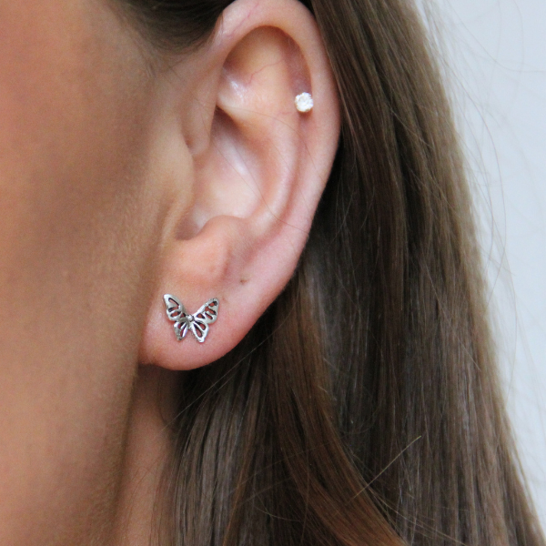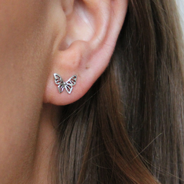 Ett par söta fjärilar som pryder öronen och som får vem som helst att längta efter sommar och sol. Fjärilen mäter 10x7mm.