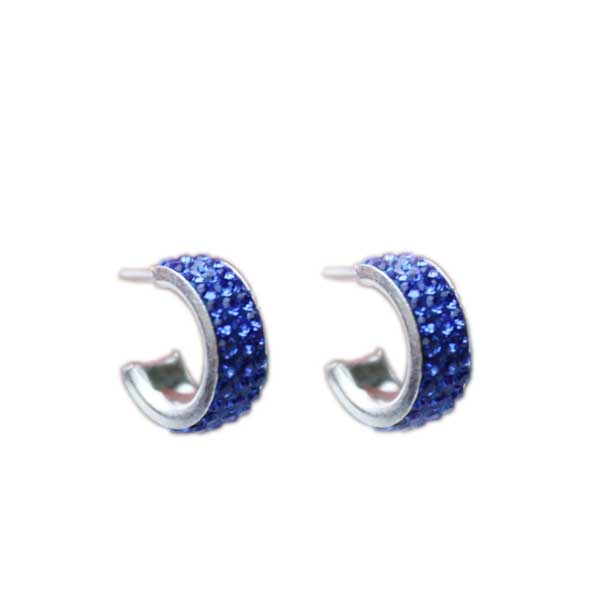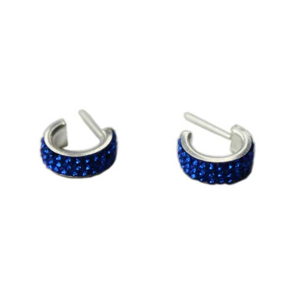 Mindre creol med strass som passar de flesta tillfällen och är ett av våra mest populära örhänge. Creolen är öppen baktill och sätts in i örat med stift. Creolen är 12mm i diameter och 4mm bred, med 3 små strassplattor i bredd. Färgen är SAPPHIRE BLUE som är en mörk/kunglig blå variant. Vi reserverar oss för att färgåtergivningen kan vara olika på olika skärmar. Självklart tillverkat av 925 sterling silver.